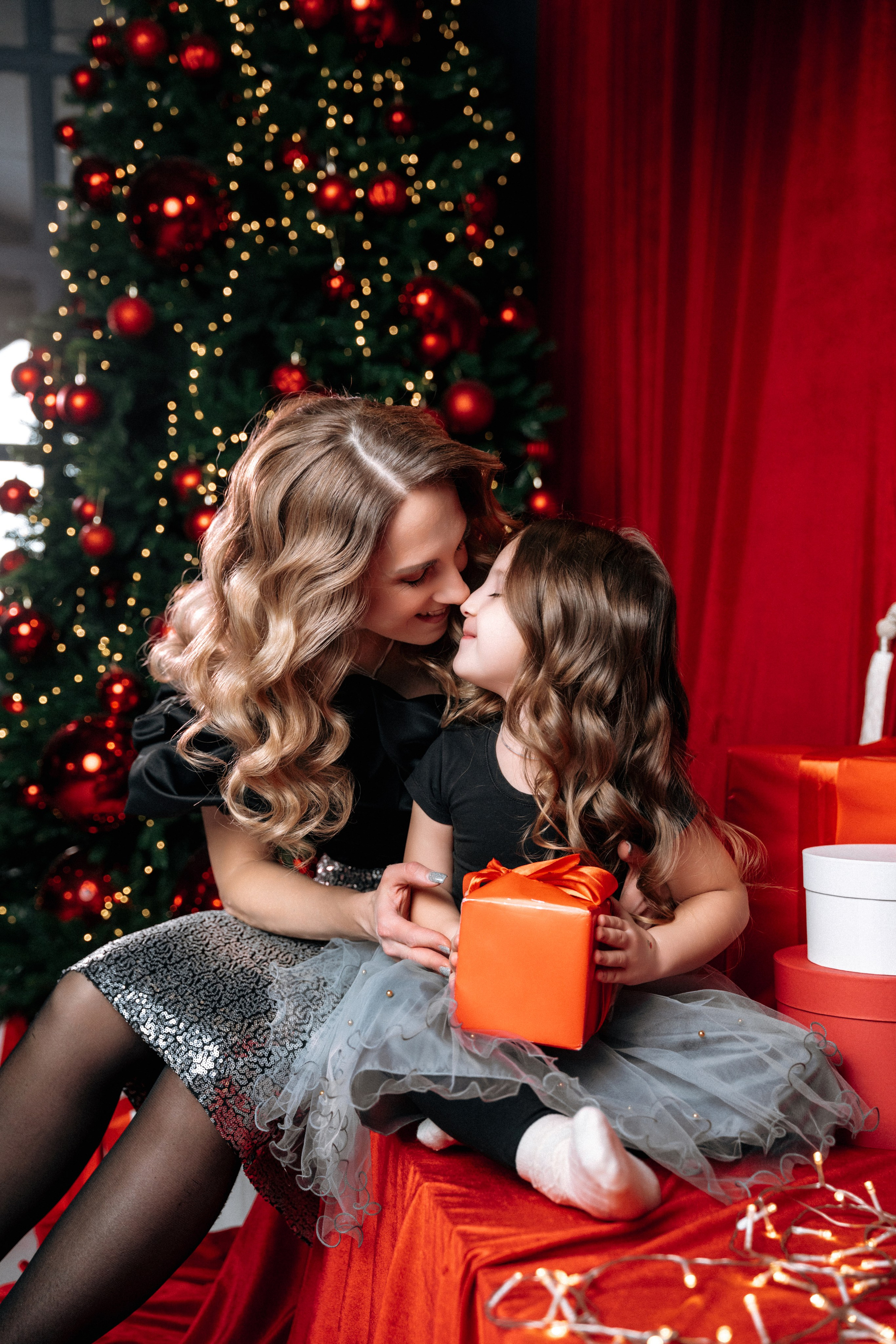 Семья в бордовом